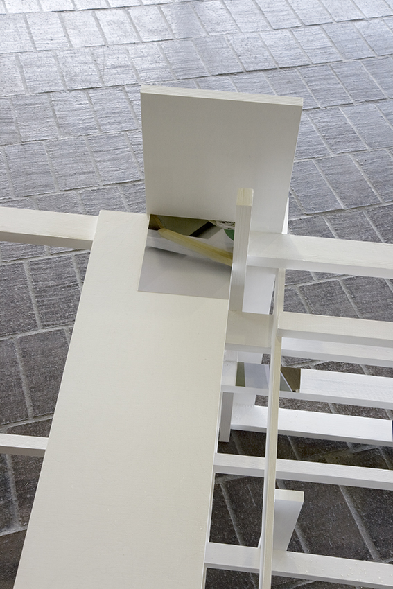 , 2010 (Detailansicht), Holz, Farbe und Fotoausschnitte, ca. 350 x 80 x 105 cm, Japanisches Kulturinstitut, Köln, 2010/11