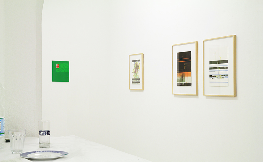 3 Atelierbilder, 2012 (Aquarellfarbe u. Pigmentdruck auf Büttenpapier), ganz links: Thomas Kemper, Malerei