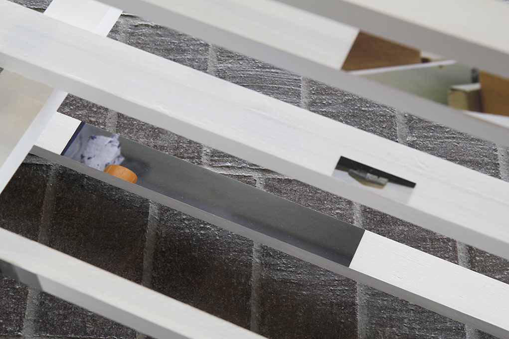 , 2010 (Detailansicht), Holz, Farbe und Fotoausschnitte, ca. 350 x 80 x 105 cm, Japanisches Kulturinstitut, Köln, 2010/11